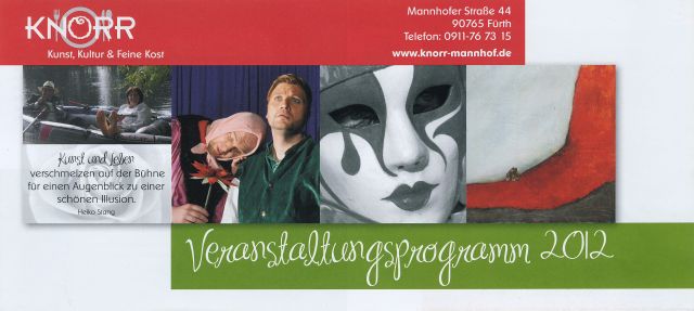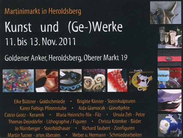 | Von Mitte November 2011 bis Ende 2012 präsentierte Brigitte Maria Kloster die "Galerie der Köpfe" in der Kulturscheune Knorr, Mannhofer Strasse 44, 90768 Fürth.